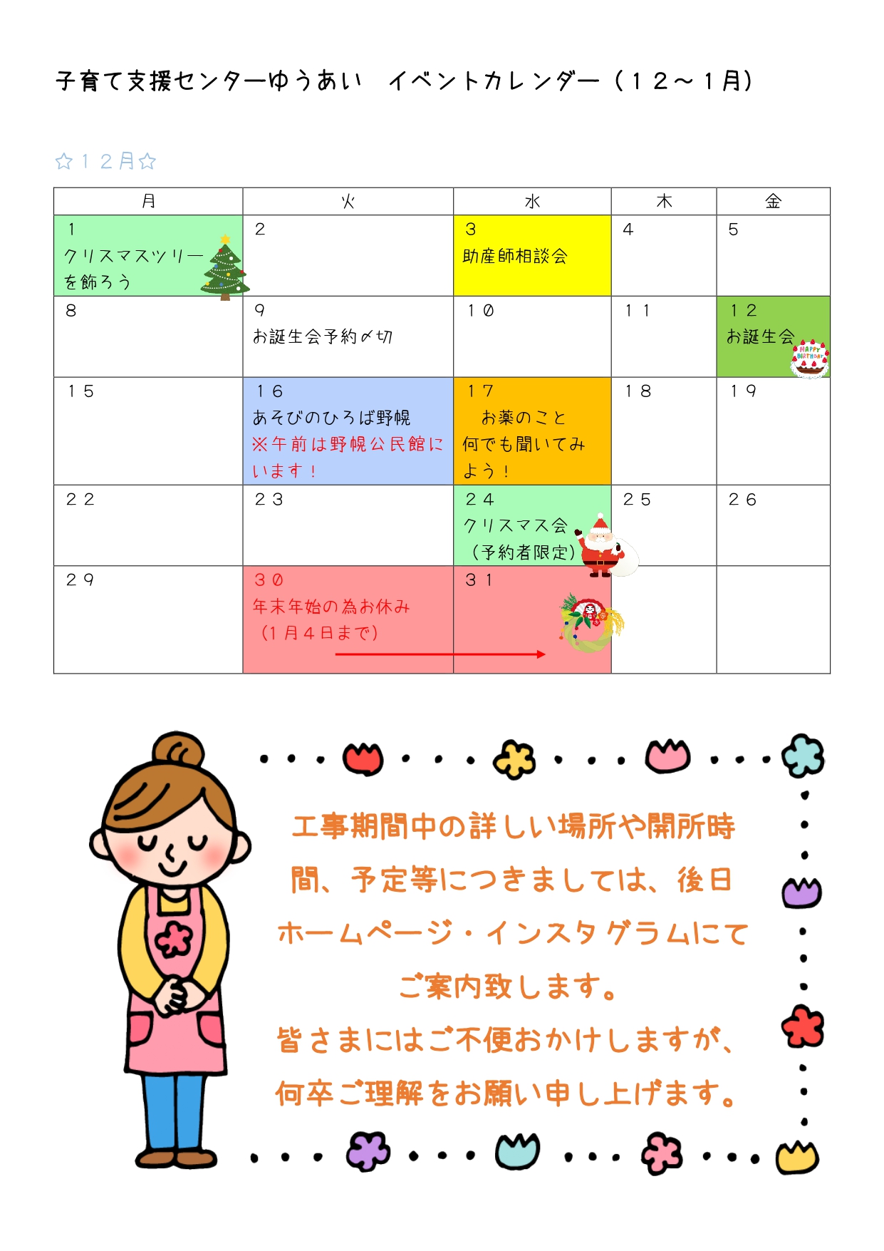 季節のイベントや、製作、子育てに関する講習会などを行なっています。イベントによっては、人数制限や予約が必要な場合もあります。