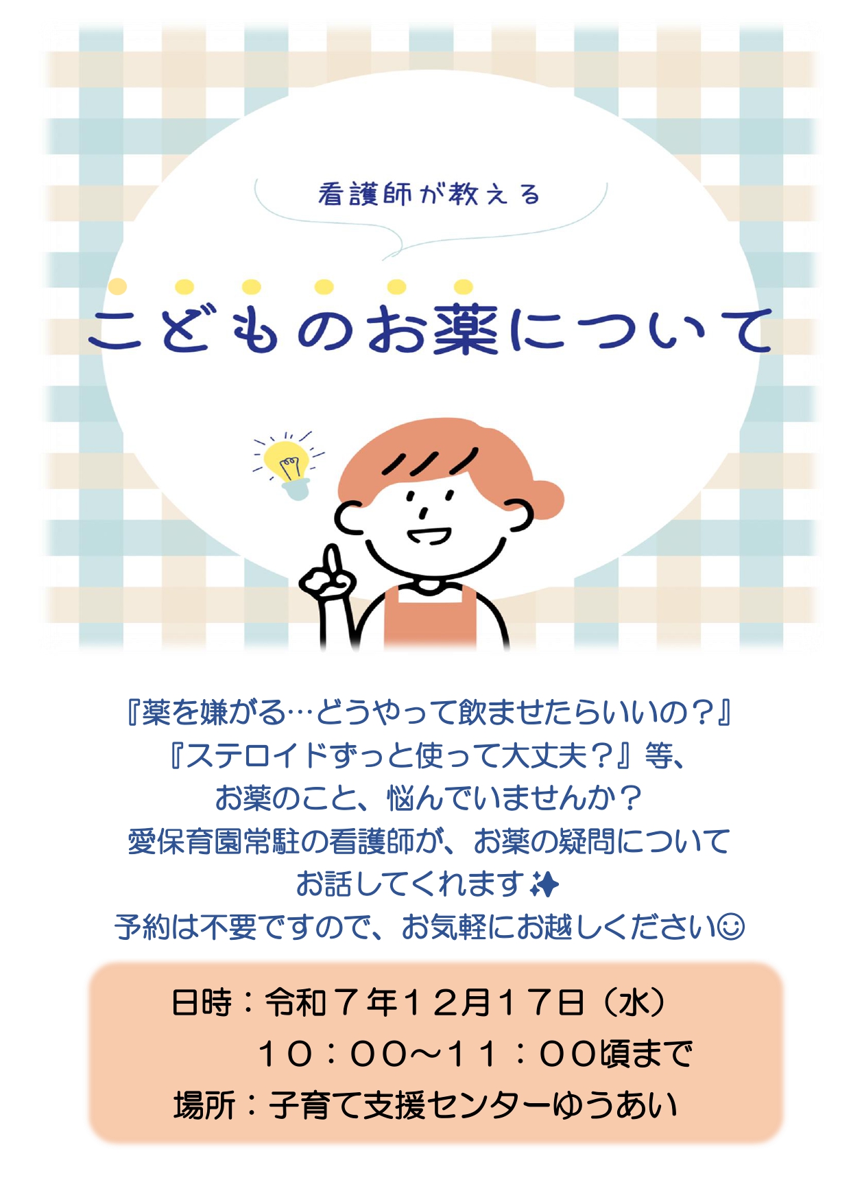 お子さんの成長過程や発達などの心配事についてのご相談も受け付けています。例えば…言葉が遅れている、視線が合いにくい、など不安や心配に思っている事がありましたらご相談ください。