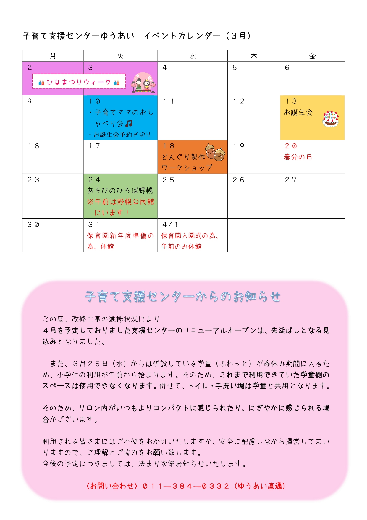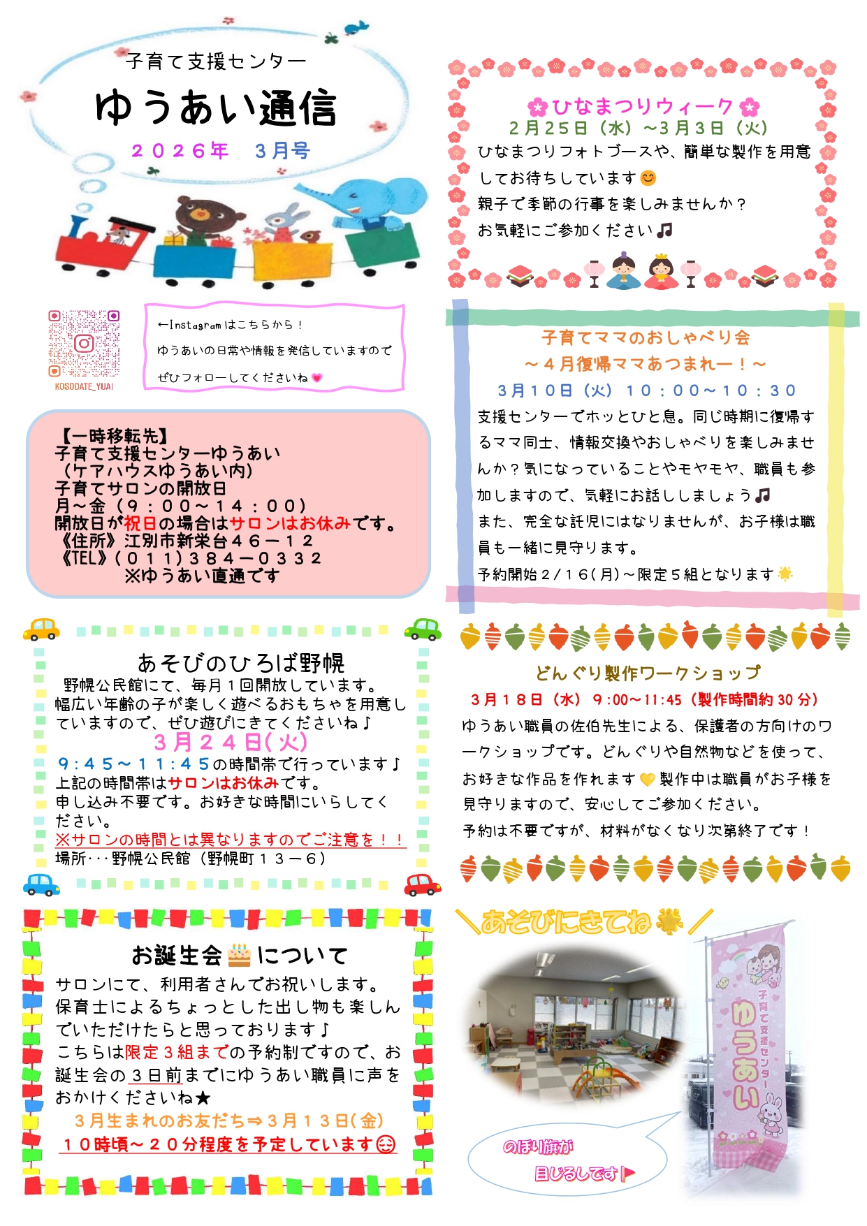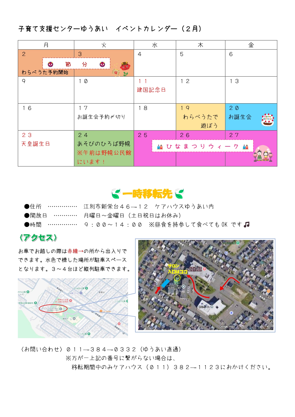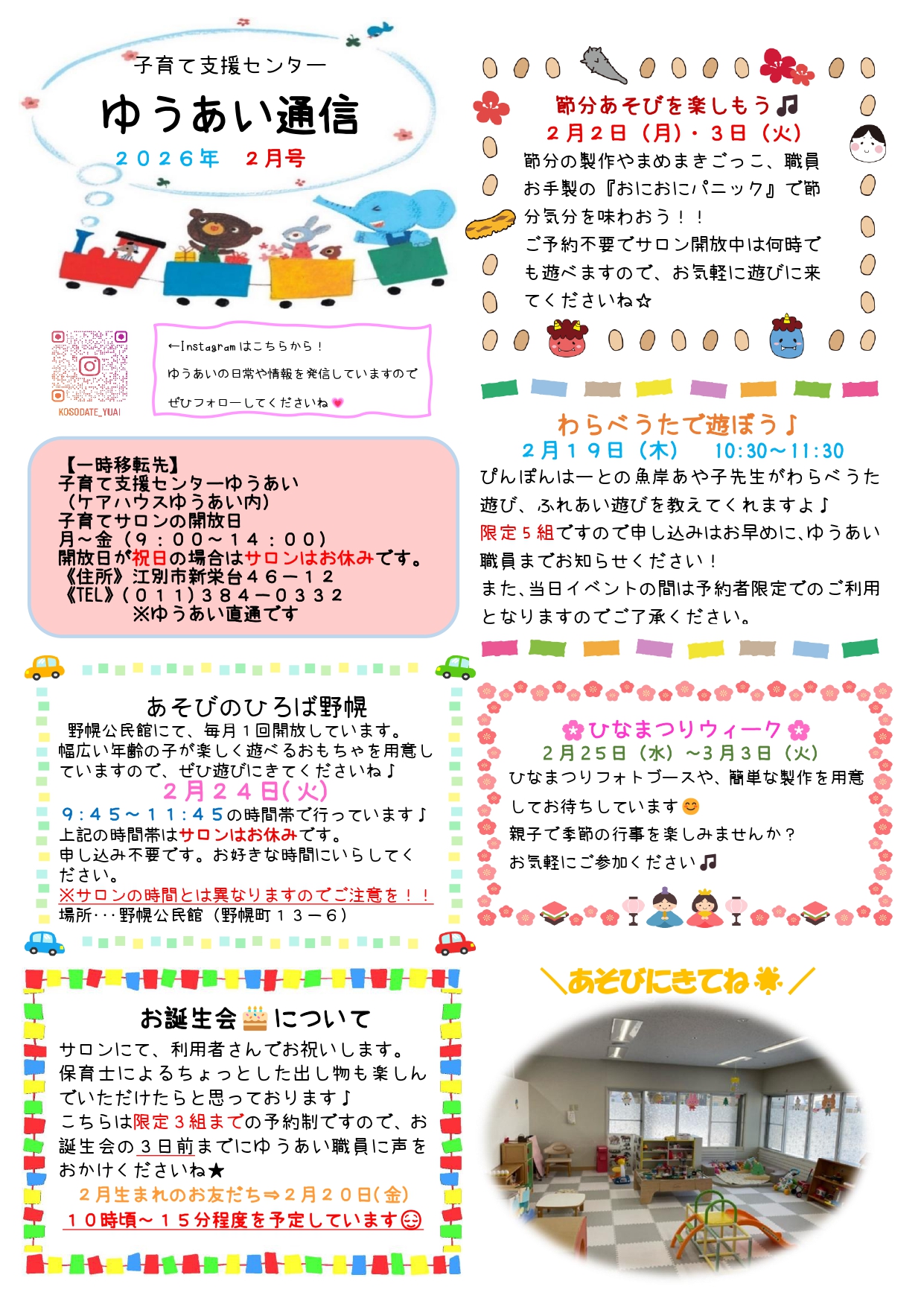 あそびのひろば野幌は野幌公民館にて、毎月1回開放しています。楽しい遊びを用意してお待ちしております。どうぞ、親子で遊びにいらしてください。