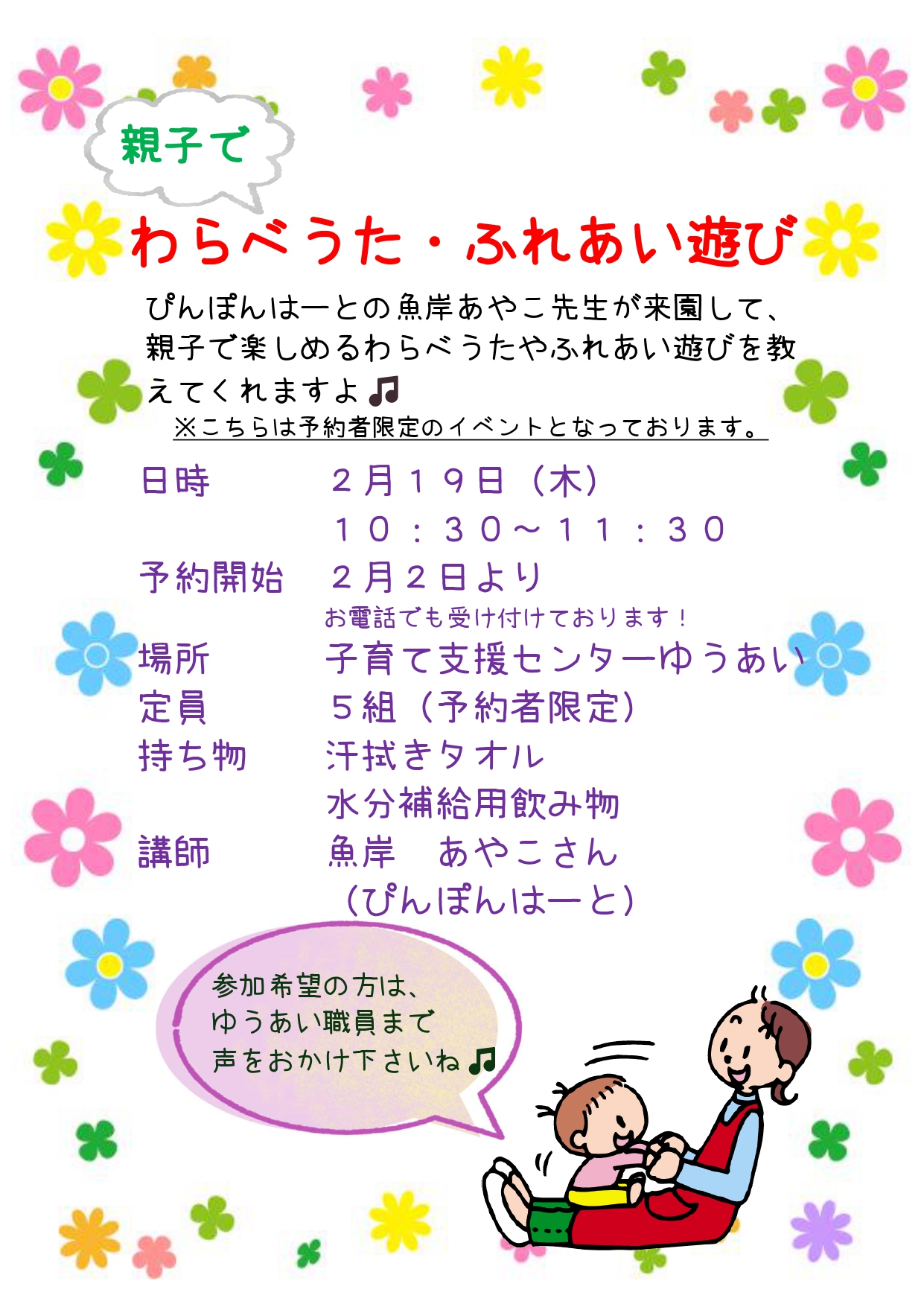 保育園のお友だちと一緒に園行事に参加しませんか?誕生会や夏祭りなど楽しい行事がありますよ。こちらは予約が必要になります。詳しくは職員まで、お問い合わせください。