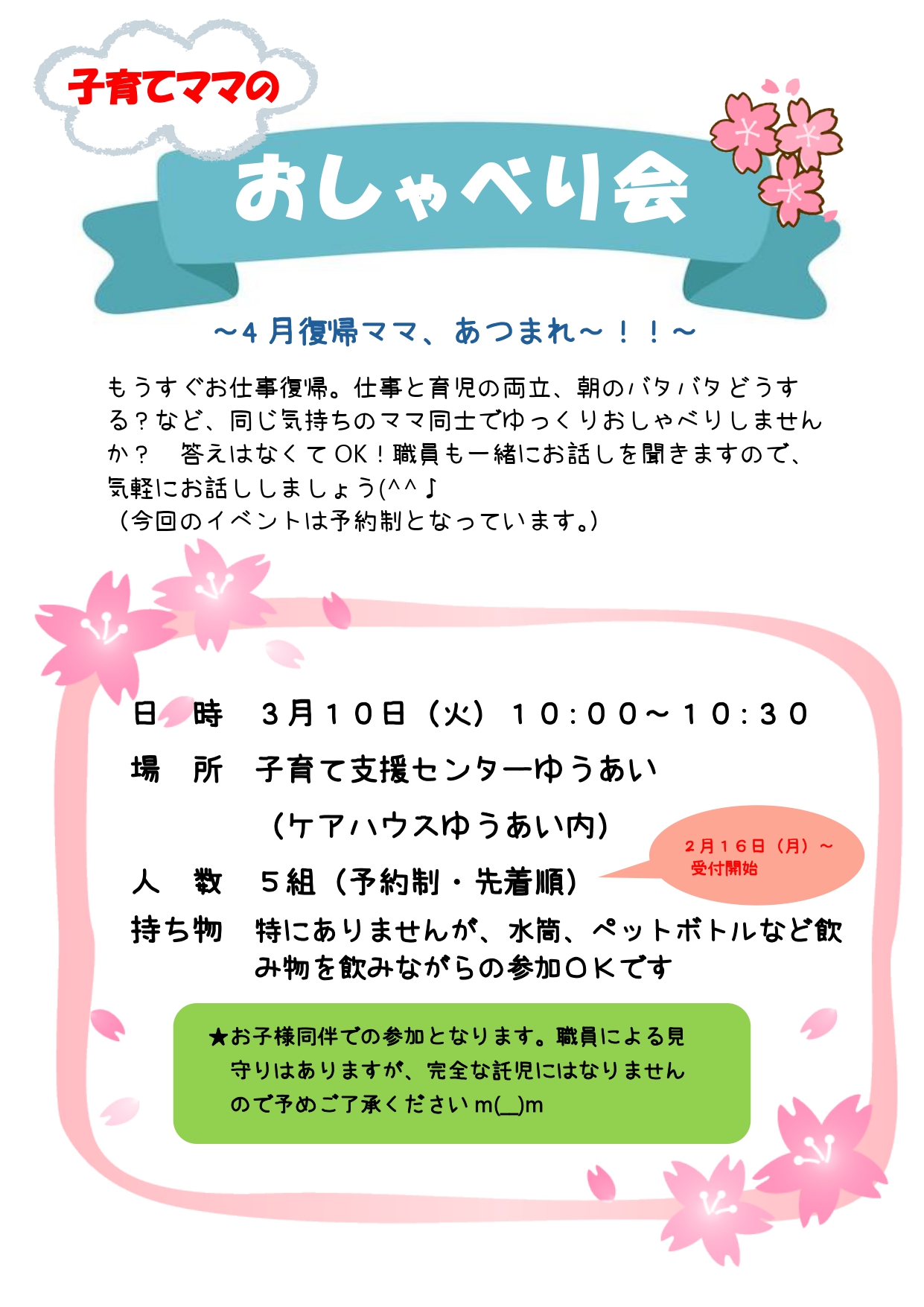 子育てで心配な事や悩んでいる事など一緒にお話ししませんか。来園、お電話でのご相談、お問い合わせもお待ちしております。お気軽にお声掛けください。